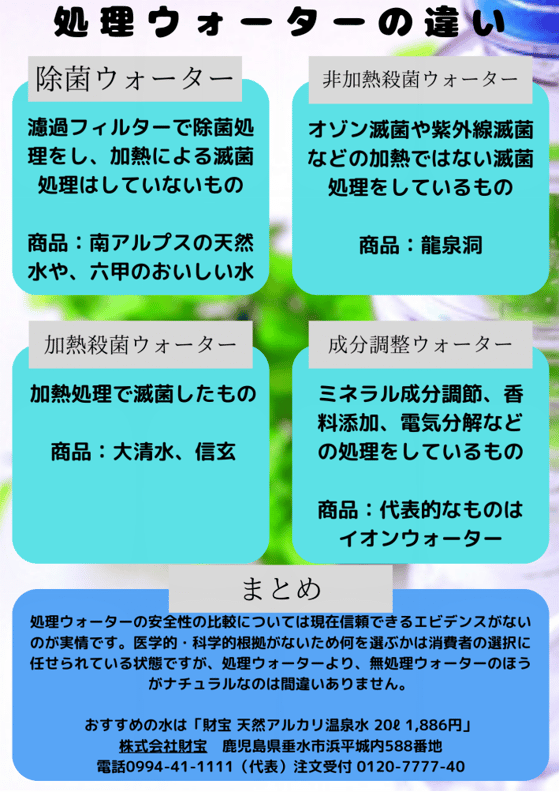 さらに、処理ウォーターは以下の4種類に分かれます。