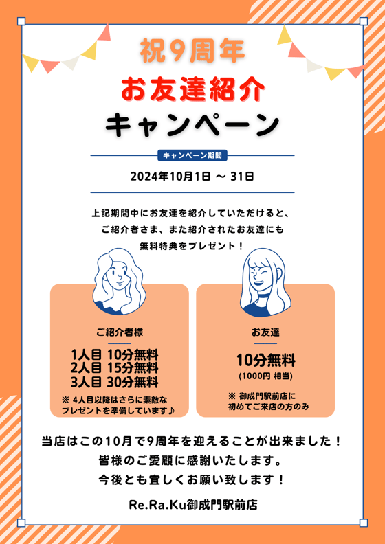お友達をご紹介していただきますと、ご紹介者様、また紹介されたお友達にも無料特典をプレゼント!