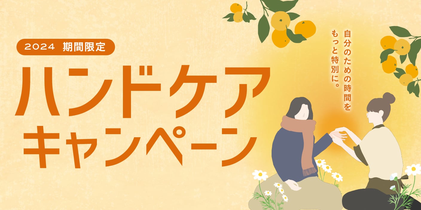 心身ともにリラックスこだわり旬のミカンはじめリラックス嬢王・王子伝道のカモミールの香りに包まれて今月いっぱいまでハンドケアキャンペーンでございます
