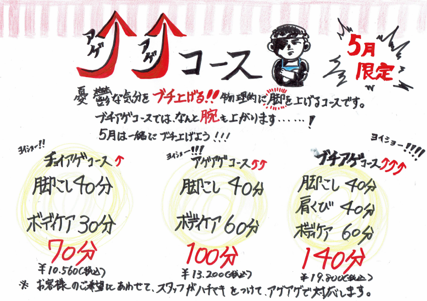 5月限定、【アゲアゲコース】をご用意しましたー!!!!!