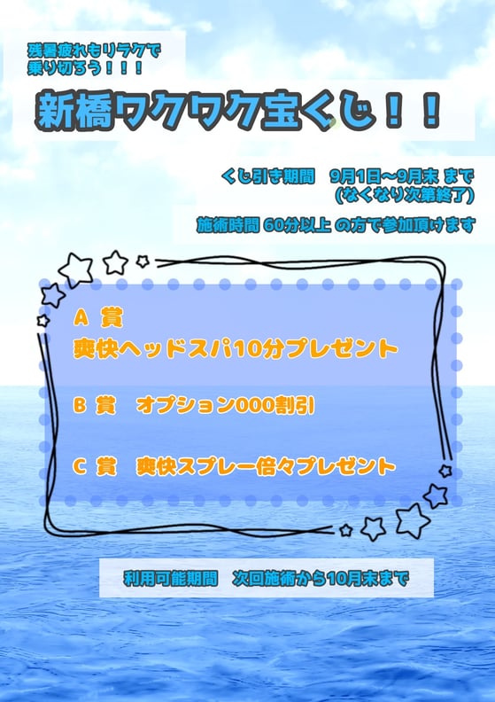 また、Re.Ra.Ku新橋店では9月中にご来店いただいた皆様へ(60分以上のコースご利用の方)