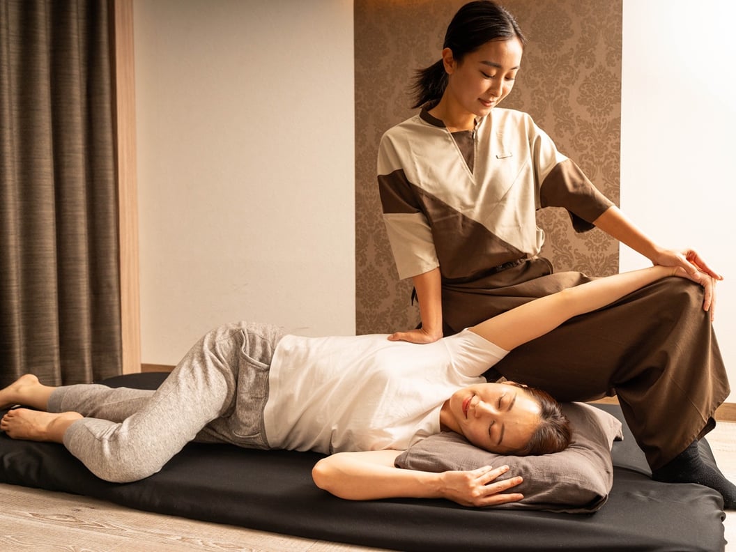 この90分では、特に上半身(肩甲骨・胸筋・首筋)へのダイナミックなストレッチを重点的に組み込んでいます。 プレミアムならではの深部まで届く圧と独自の技術が、内側に入り込んだ肩をグッと開き、本来の正しい位置へと導きます。「全身を整えたいけれど、120分は時間が取れない。でも、確かな変化を感じたい」という、お忙しいビジネスパーソンに最適なボリュームです。