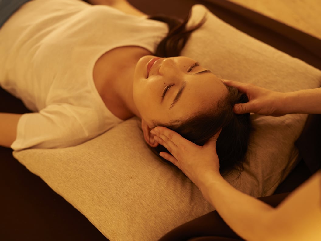 施術中は、頭部を中心にじっくりとアプローチしていくため、自然と力が抜け、深いリラックス状態へと導かれていきます。