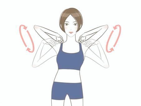 (2)そのまま肘を大きく回すようにして腕を回していく。