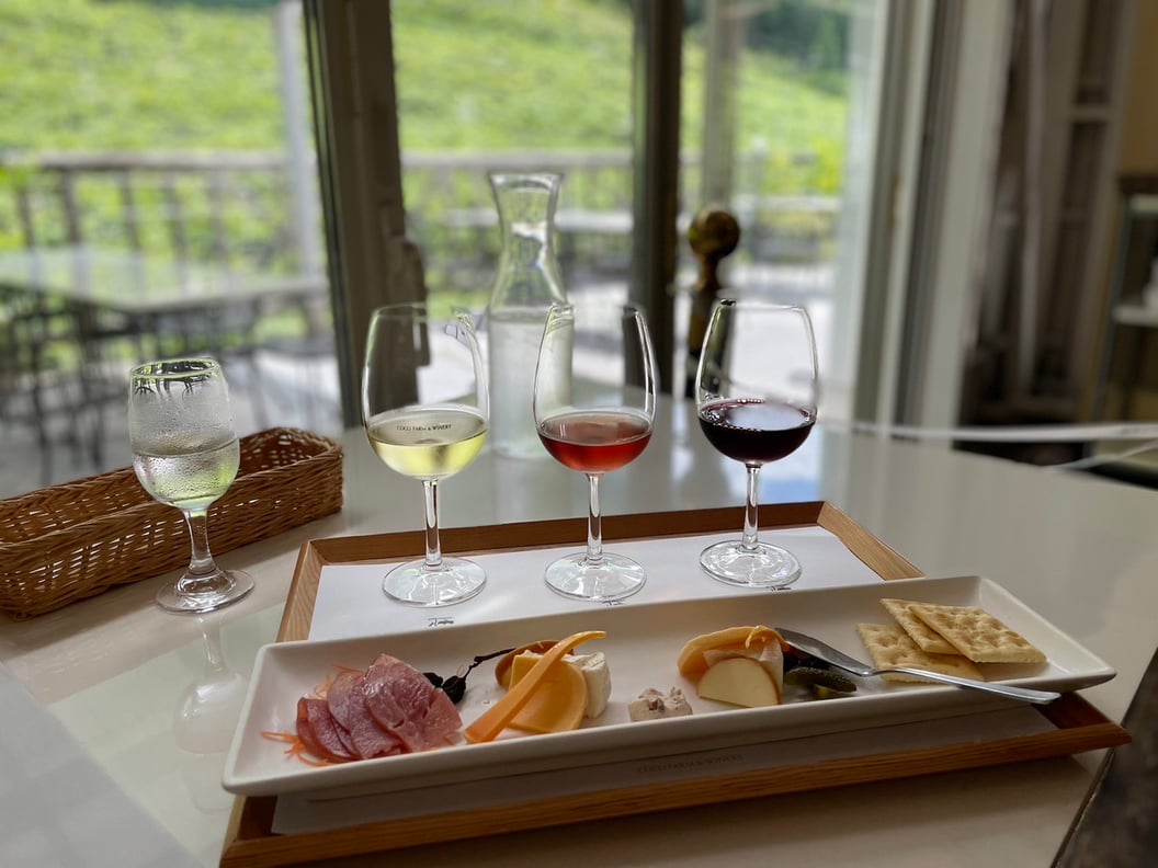 ワインのテイスティングセット!おつまみも美味しそうです( *´艸`)お天気にも恵まれて良かったですね。
