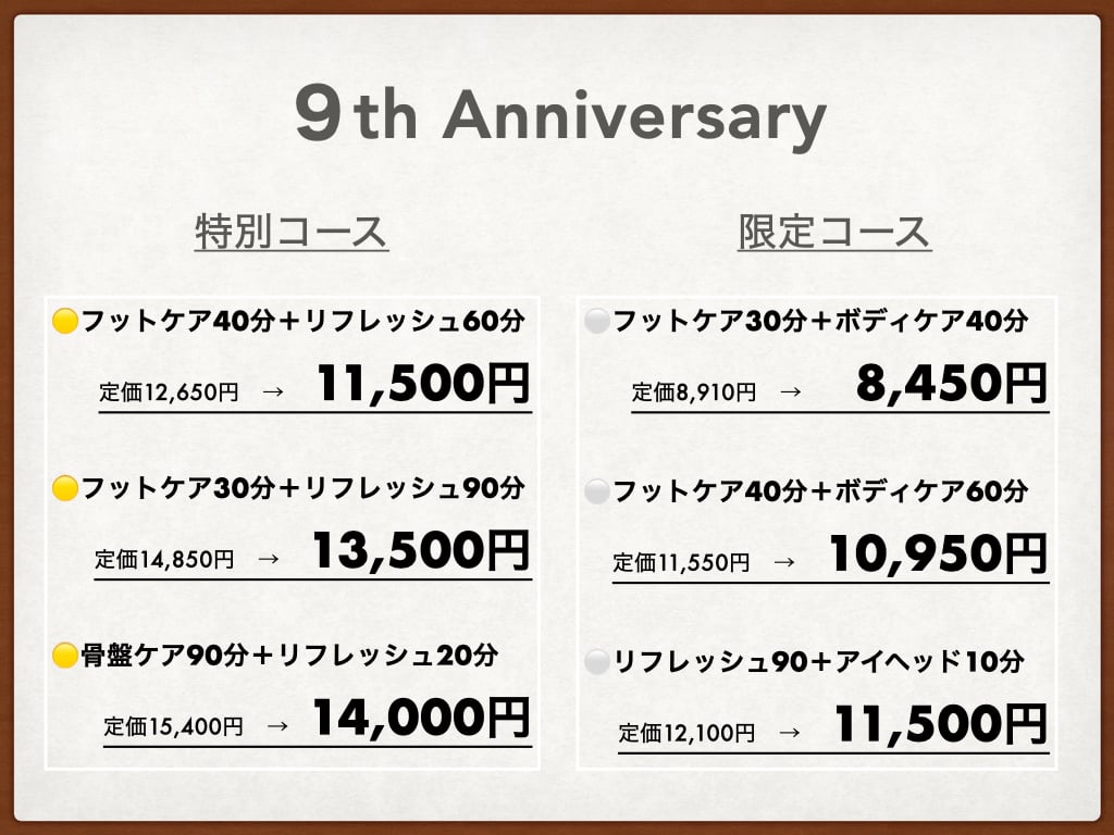 皆様へ日頃の感謝を込めて、一足早いですが11月から9周年の特別メニューをご用意いたしました♪