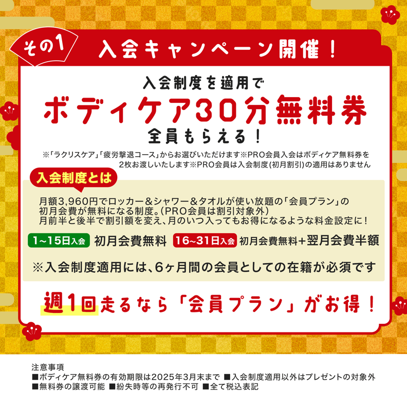 ※ボディケア無料券の有効期限は、2025年3月末までとなります。