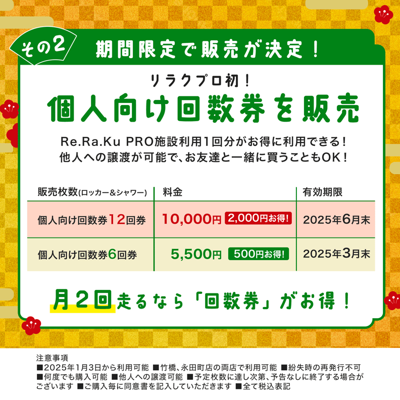 リラクプロ初!個人向けの回数券を12枚、6枚綴りの2種で販売いたします。