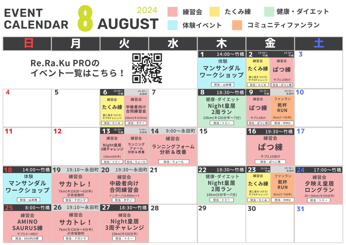 8月のRUN EVENT カレンダー