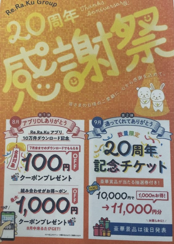 なんと!この度、Re.Ra.Kuグループが20周年を迎えます\(^o^)/