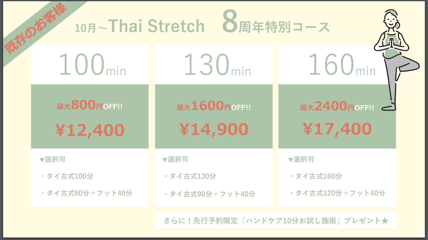 Thai Stretch アリオ葛西店は10月16日で8歳のお誕生日を迎えることができます。