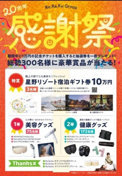 お得に使えて景品も当たる20周年記念チケットで健康ボディを手に入れましょう(^^♪