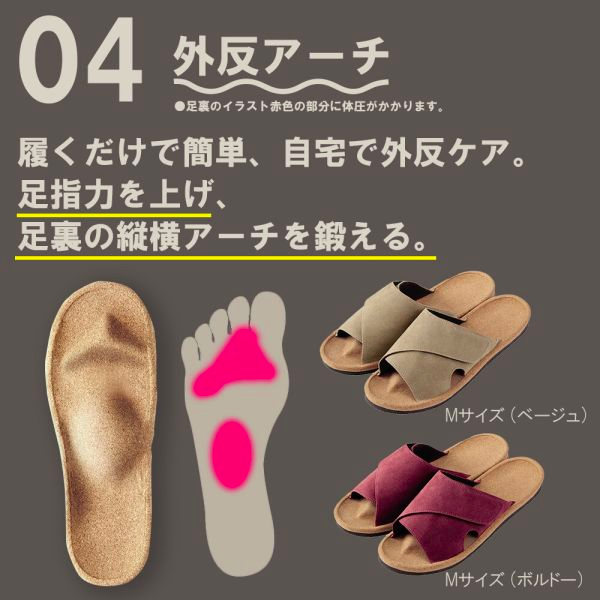 ただ、04外反アーチはMサイズ(23cm〜25cm)のみの販売となっており、大きめサイズのご案内ができません。